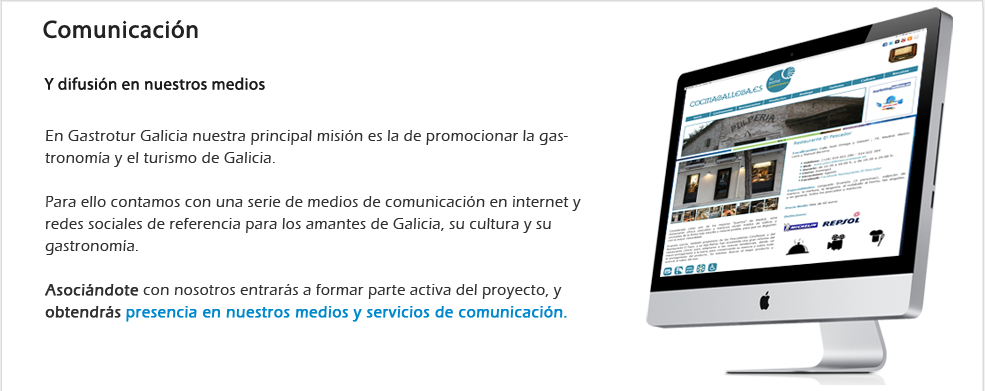 Asociación Nacional de Gastronomía y Turismo de Galicia (Gastrotur Galicia). Inscrita en el Registro Nacional de Asociaciones, Grupo 1, Sección 1, Número Nacional 598539, CIF: G70308820